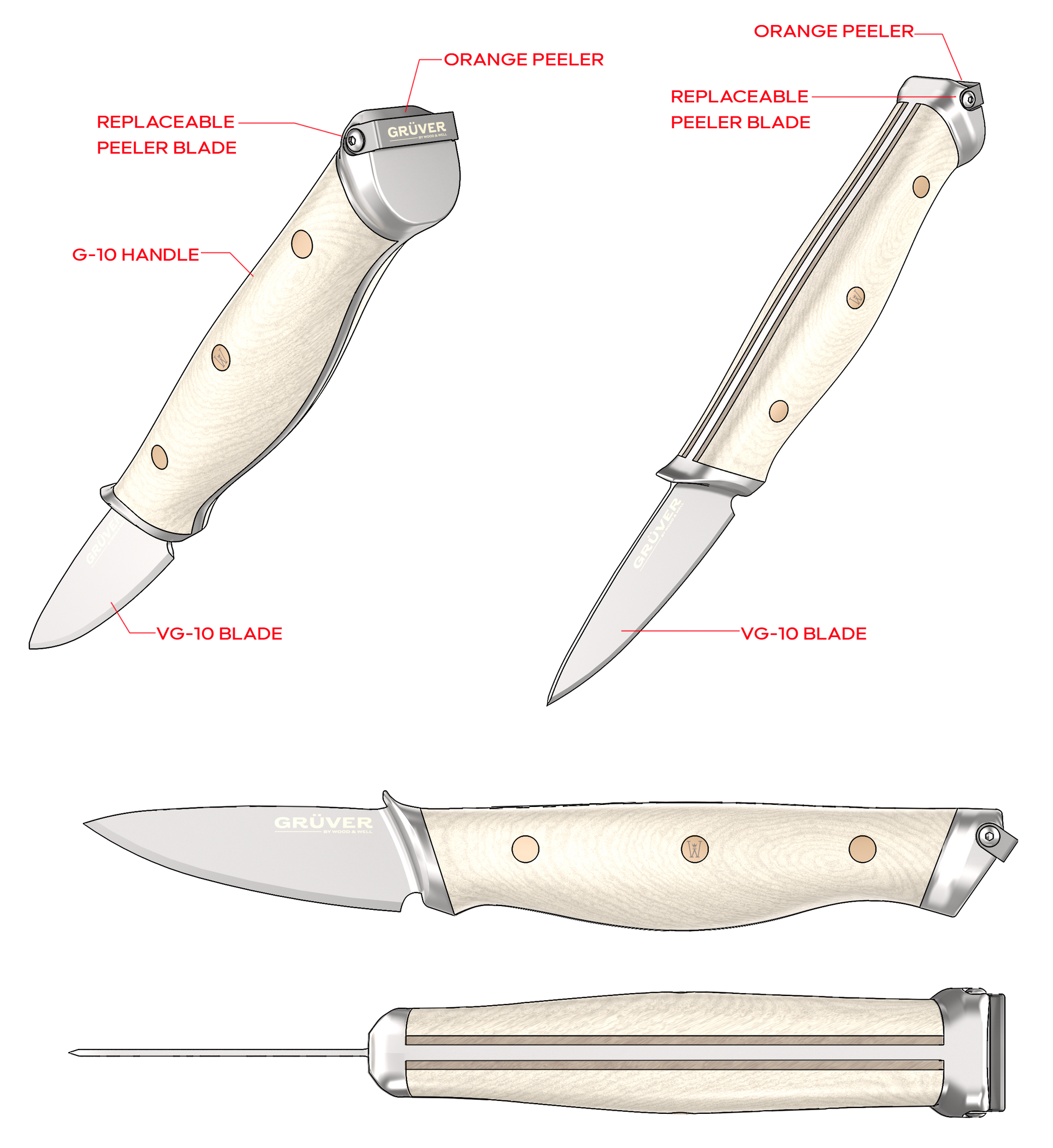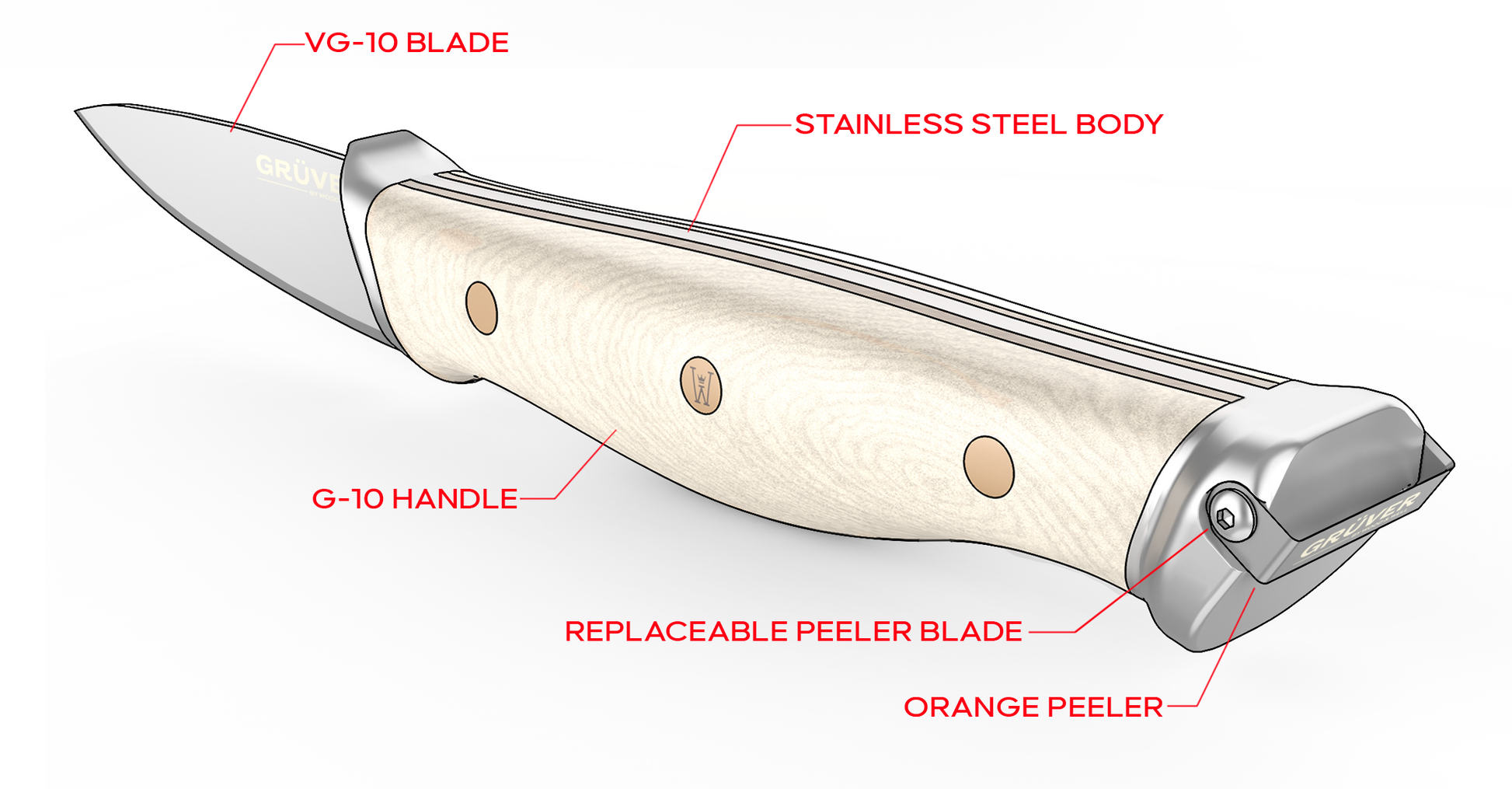 Grüver + Citrus Blade is the complete garnish tool — combining Grüver’s patented groove-cutting design with a precision-forged citrus knife, all in one uncompromising instrument.