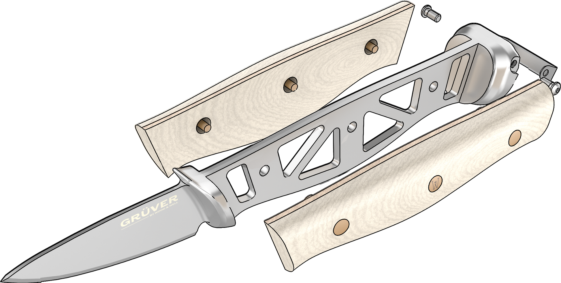 Grüver’s (pronounced Groover) groove blade is fully replaceable for long-term performance. The G-10 composite handle offers strength and moisture resistance, while a stainless steel frame ensures balance, durability, and lasting presence.